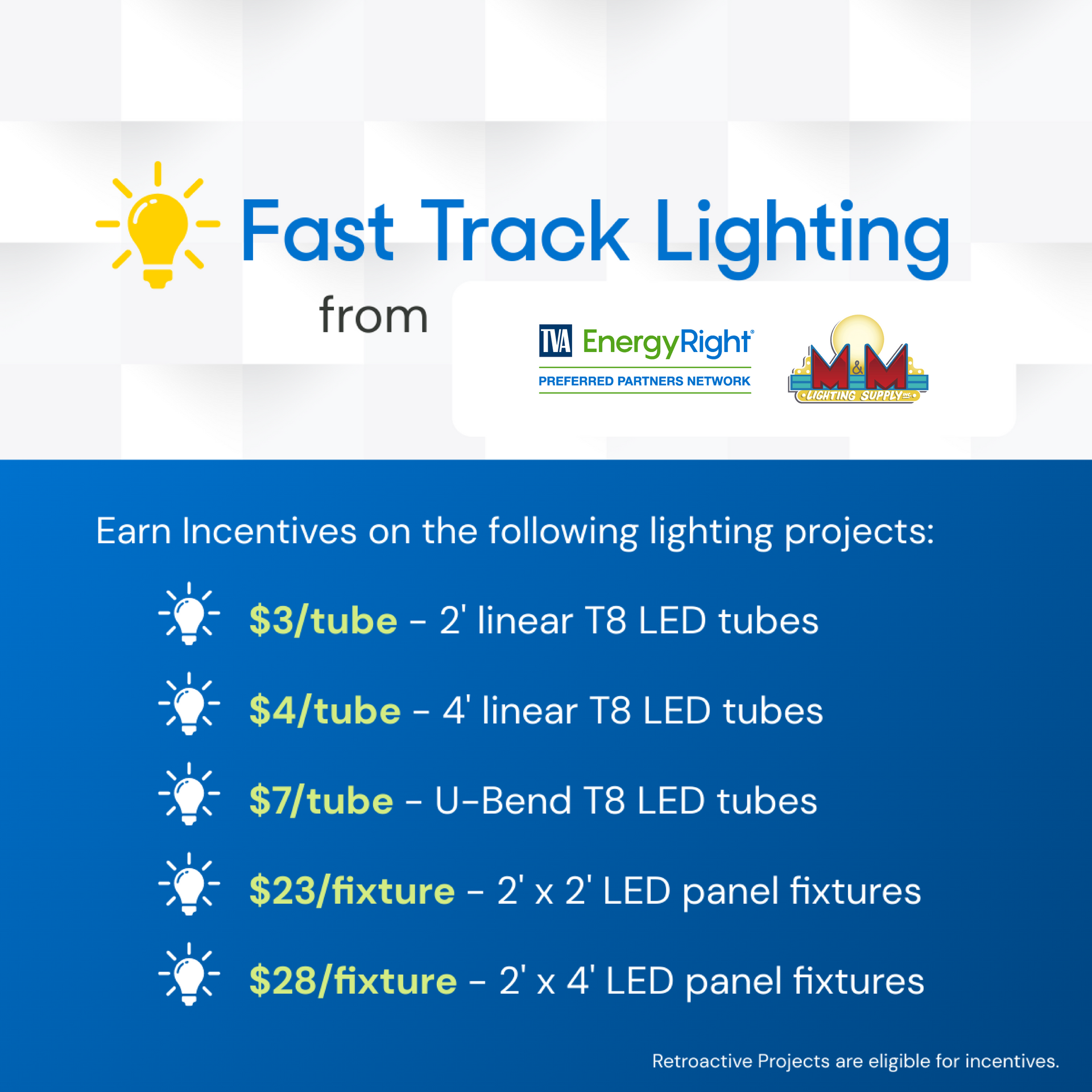 Fast Track Lighting from TVAEnergyRight is a quick, easy and efficient way to claim incentives on energy-efficient upgrades!